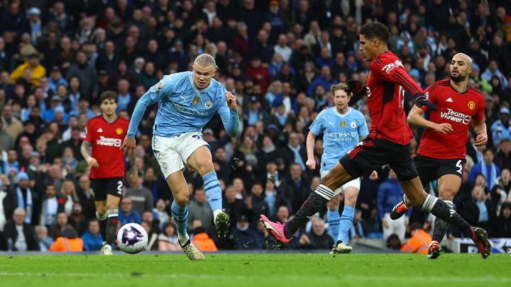 Menit ke-31 peluang tiba-tiba didapat Haaland. Ia bisa menanduk bola di tengah kotak penalti setelah bek MU gagal menghalau bola dengan sempurna. Sayang bola masih melamun dari sasaran.
