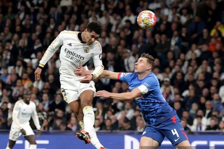Madrid coba mengungkap kedalaman Leipzig, dengan salah satunya lewat peluang Jude Bellingham. Namun, upaya pemain Inggris itu masih bisa diblok.