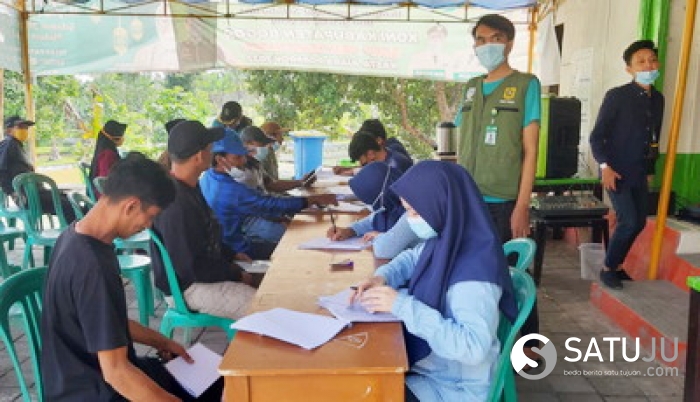 Kantor Bank Mandiri cabang warung jambu membagikan kartu keluarga sejahtera (KKS) kepada warga desa pasarean dilaksanakan di Aula halaman Villa pada Kamis dan Jumat (2-3/09/2021).