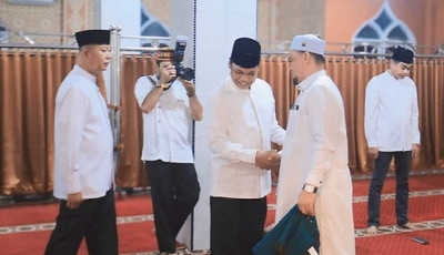 Muflihun disambut hangat oleh jamaah Masjid Al-Washliyah yang hadir. Rombongan safari Ramadhan Pemko Pekanbaru ini mengawali kegiatan dengan salat isya berjamaah.