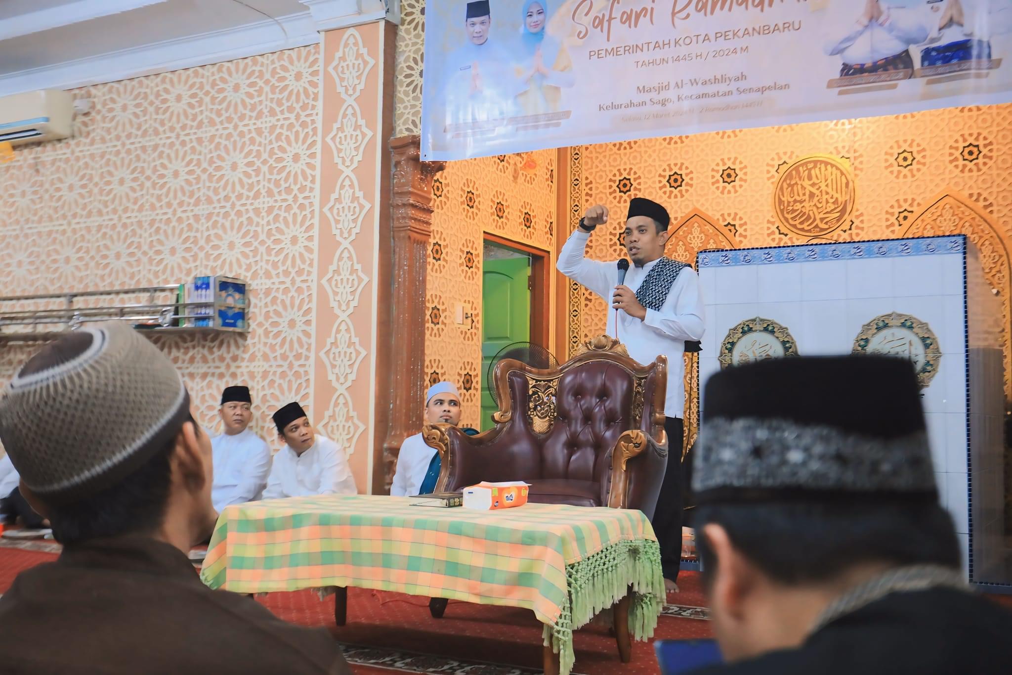 Pekanbaru, Satuju.com - Safari Ramadhan 1445 H/ 2024 M diawali Penjabat (Pj) Wali Kota Pekanbaru Muflihun, S.STP, M.AP di Masjid Al-Washliyah, Jalan Samratulangi, Kelurahan Sagu, Kecamatan Senapelan, Selasa (12/3 /2024) malam.