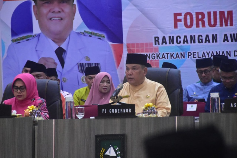 Pj. Gubri SF Haryanto menyampaikan Prioritas dan arah kebijakan rancangan awal RKPD Provinsi Riau Tahun 2025 yang mengusung tema "Meningkatkan Pelayanan Dasar dan Tata Kelola serta Pemerataan Infrastruktur untuk Penguatan Ekonomi Daerah.