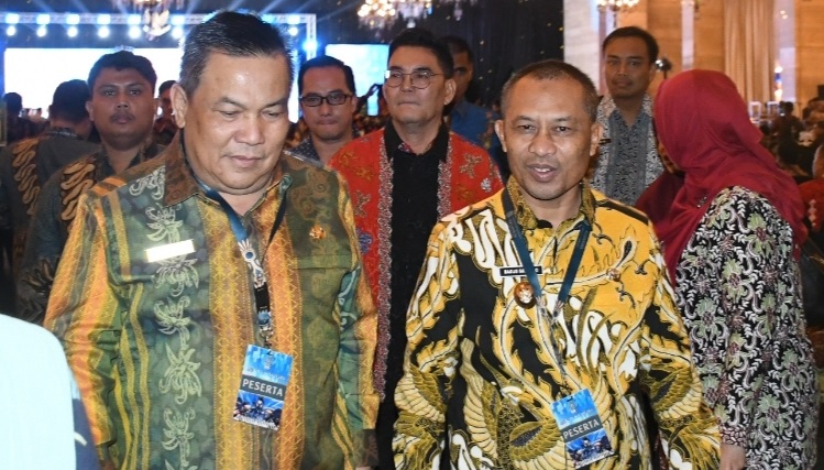 Wabup Dr. H. Bagus Santoso tiba di lokasi acara mengenakan batik dan duduk bersama Pj Gubernur Riau SF Hariyanto serta beberapa Kepala Daerah se-Provinsi Riau.