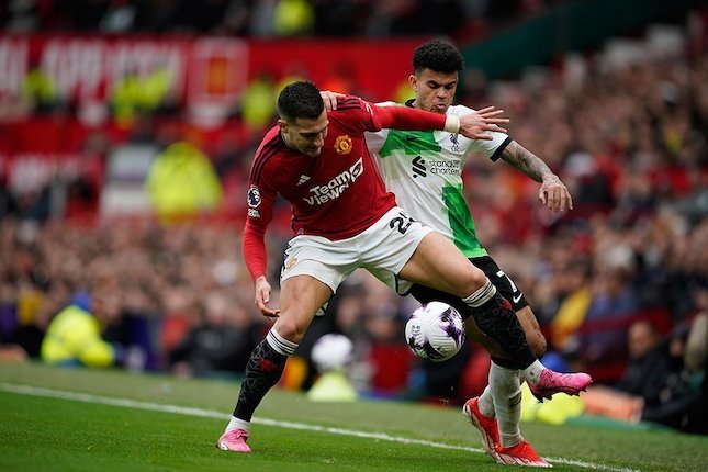 Menit ke-23, Liverpool memecah kebuntuan. Umpan lambung Robertson dari sisi kanan, bola dibelokkan Nunez ke tiang jauh, diterima sepakan gunting Diaz dari jarak dekat. Manchester United 0-1 Liverpool.