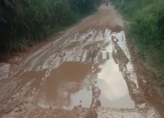 Terlihat dalam video tersebut jalan yang dilalui pengedara berlumpur dan berlubang, sehingga menyulitkan pengendara melalui jalan tersebut.