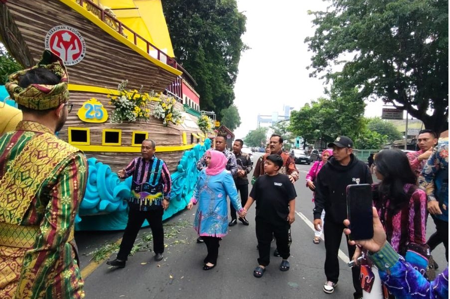 Solo, Satuju.com - Kirab Budaya, sempena peringatan HUT ke- 44 Dewan Kerajinan Nasional Daerah (Dekranasda) tahun 2024, Rabu 15 Mei 2024, Pamedan Mangkunegara Kota Surakarta/Solo Jawa Tengah dihadiri Bupati Bengkalis, Kasmarni.