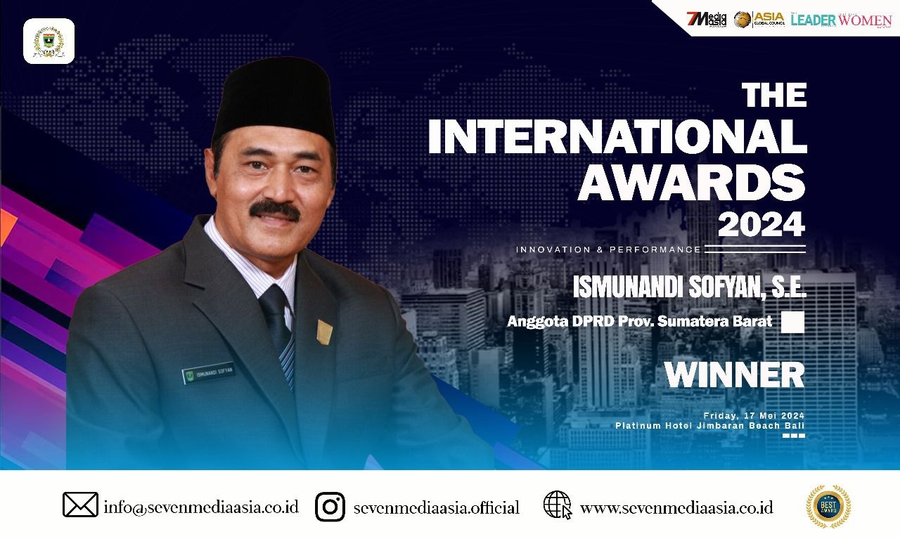 Bali, Satuju.com - Seven Media Asia, Asia Global Council & The Leaders Magazine dan Inspiring Women Magazine, dan akan memberikan penghargaan kepada anggota DPRD Provinsi Sumatera Barat, Ismunandi Sofyan, S.E.