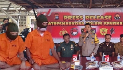 Kapolres Bengkalis AKBP Setyo Bimo Anggoro, SH, SIK, MH melalui Kasat Narkoba Iptu, Hasan Basri menyampaikan dalam pers release Satres Narkoba Polres Bengkalis, 2 tersangka diamankan dalam perkara kasus tersebut.