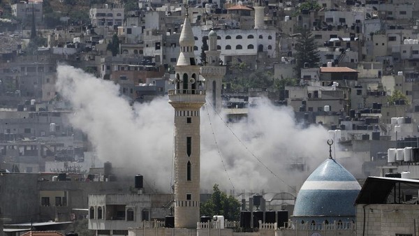 Asap mengepul di kamp pengungsi kota itu pada sore hari, dengan ledakan dan suara tembakan terdengar dari dalam. Sementara tentara di kendaraan lapis baja Israel menembaki pemuda bertopeng di pusat kota, seperti dikutip dari AFP.