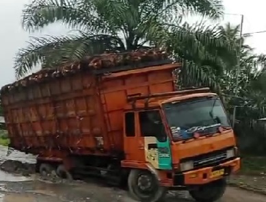 Inhu, Satuju.com - Jalan Lintas Tengah Peranap Air Molek Desa Bongkal Malang rusak parah akibat truk-truk Over Dimension/Over Loading (ODOL) atau kendaraan kendaraan berat yang memiliki dimensi dan muatan kelebihan batu bara yang melintasi jalan tersebut.