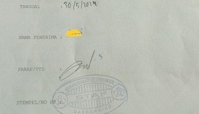 Tanda terima Reskrimum, Polda Riau. Kamis, (30/5/2024).