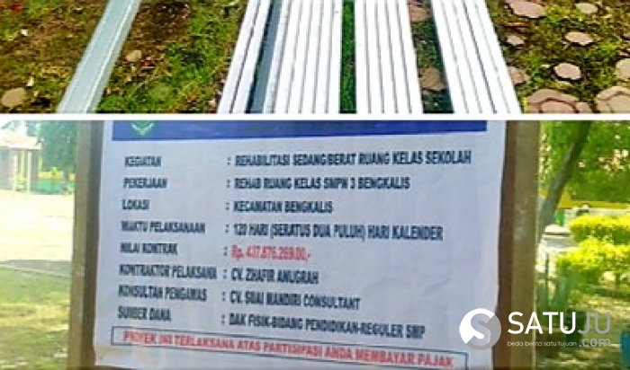 Bengkalis, satuju.com - Proyek rehabilitas sedang berat ruang kelas Sekolah SMPN 03, Kecamatan Bengkalis Kab Bengkalis bersumber dari (DAK Fisik-bidang Pendidikan-Reguler SMP) melalui dinas Pendidikan Kab Bengkalis TA 2021.