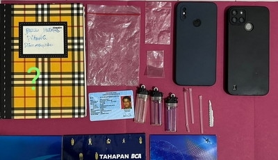 barang bukti (BB) berupa, 1(Satu) Sisa plastik diduga berisikan Narkotika jenis sabu seberat 1,48 gram, 2 (Dua) Plastik pack, 3 (Tiga) Korek api, Sendok sabu, Alat hisap/Bong, 2 (Dua) Unit handphone android, 1 (Satu) Buku catatan hutang dan 3 (Tiga) Buku tabungan