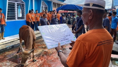 Foto; Raya Idul Adha 1445 Hijriyah melaksanakan pemotongan hewan kurban sebanyak 13 ekor hewan kurban yang terdiri dari 9 ekor sapi dan 4 ekor kambing, Senin, (17/06/2024).