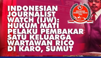Jakarta, Satuju.com - Setelah melakukan investigasi Indonesian Journalist Watch (IJW) membuat pernyataan keras, jika pelaku yang membakar satu keluarga wartawan Rico Sempurna Pasaribu (47) bersama Istri, Anak dan Cucu di Kabupaten Karo, Sumatera Utara harus dihukum mati.