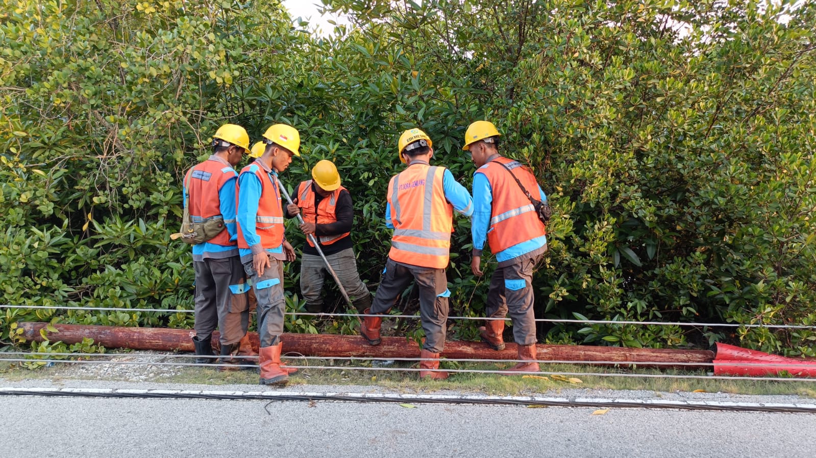 "Saya bersama tim langsung ke lokasi dan saat ini kami sedang bekerja melakukan penanganan. Kami sudah berusaha keras untuk menegakkan kembali tiang yang tumbang tersebut," jelasnya.