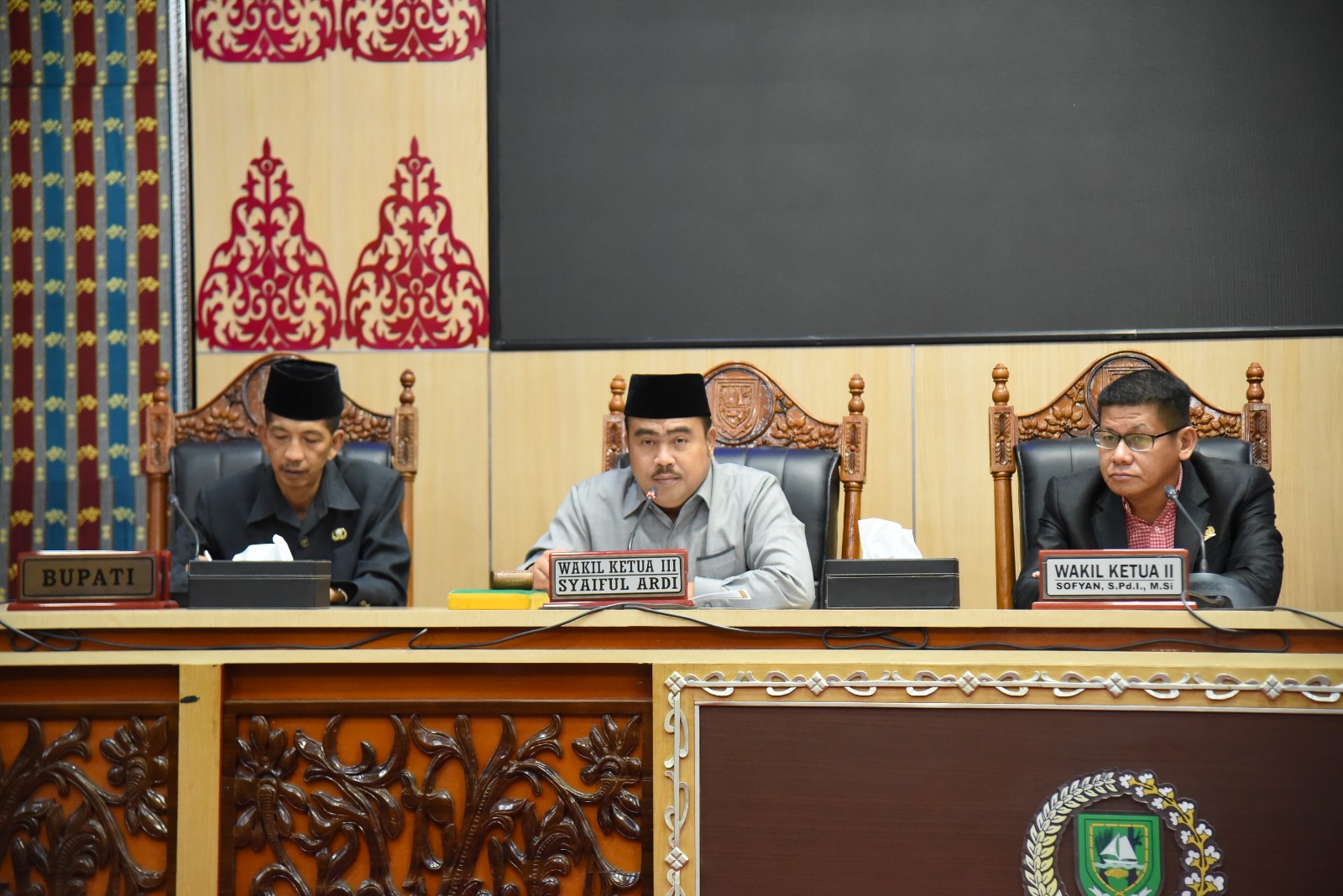 Rapat di Pimpin langsung oleh Wakil Ketua DPRD Syaiful Ardi dan Sofyan serta Bupati Bengkalis diwakili Wakil Bupati Bagus Santoso.