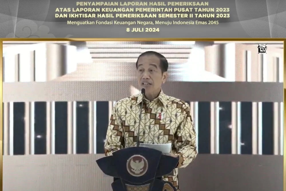 "Saya ingin menyampaikan selamat kepada seluruh jajaran pemerintah pusat dan daerah, atas predikat Wajar Tanpa Pengecualian (WTP) dalam laporan keuangan pemerintah tahun ini," kata Jokowi dalam acara penyerahan LHP LKPP Tahun 2023 di Jakarta Convention Center (JCC), Senayan, Jakarta Pusat, Senin (8/7/2024).