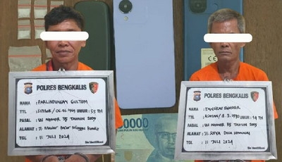 Kapolres Bengkalis AKBP Setyo Bimo Anggoro melalui Kasat Narkoba Polres Bengkalis Iptu Hasan Basri mengungkapkan beberapa barang bukti dan tersangka telah diamankan Polres Bengkalis.