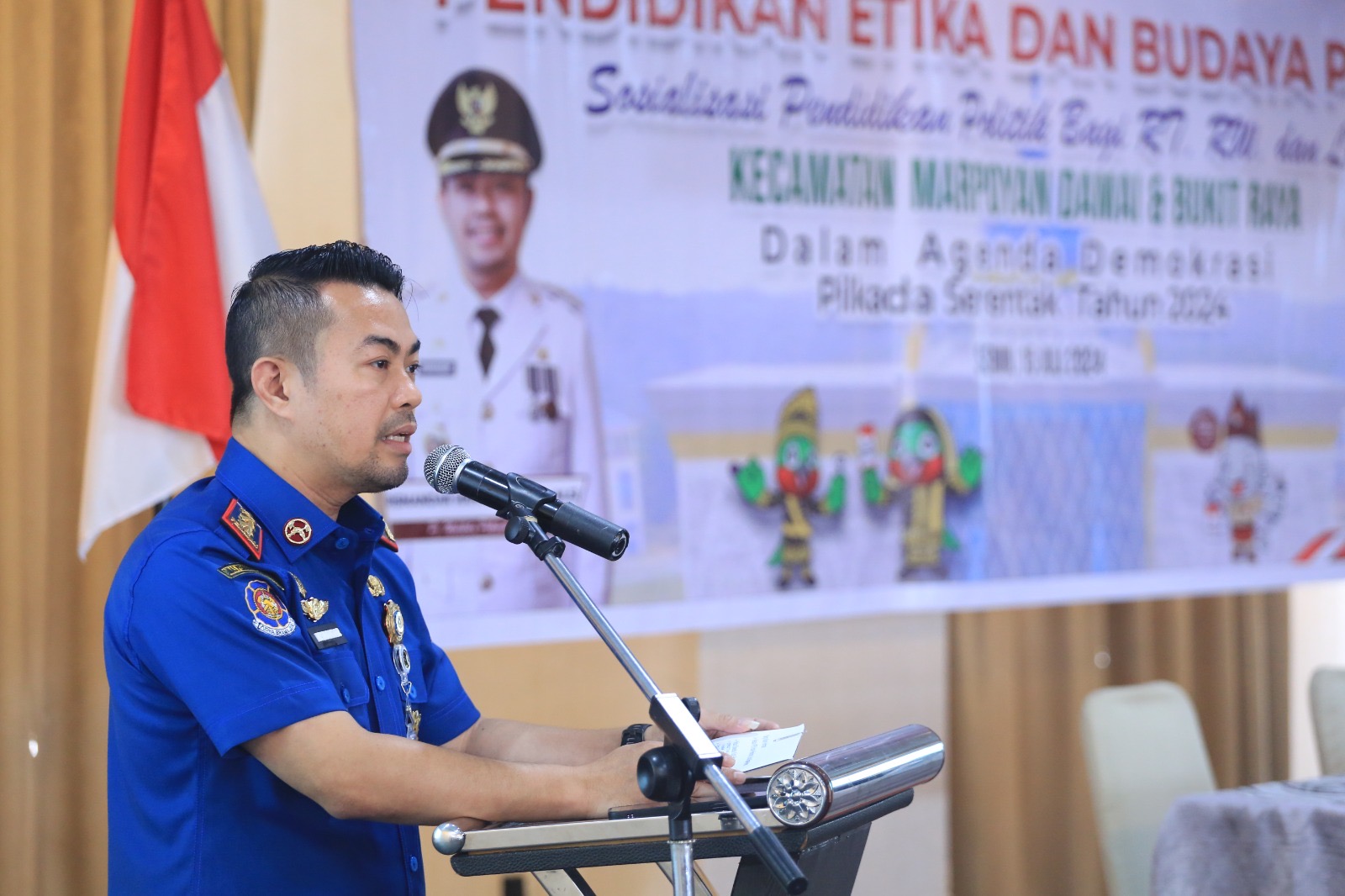 Jakarta, Satuju.com - Sosialisasi pendidikan politik bagi para ketua RT, RW, dan Lembaga Pemberdayaan Masyarakat (LPM) Kecamatan Bukit Raya dan Marpoyan Damai membuka Penjabat (Pj) Wali Kota Pekanbaru Risnandar Mahiwa. Kegiatan sosialisasi ini digelar di Hotel Dafam, Senin (15/7/2024).