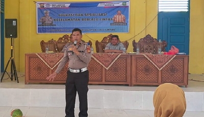 Satuju.Com, Siak - Dalam rangka Operasi Patuh Lancang Kuning 2024, Satlantas (Satuan Lalu Lintas) Polres Siak yang dipimpin langsung Kasat Lantas, AKP Fandri beserta jajaran gencar melaksanakan kegiatan Sosialisasi Keselamatan Lalu Lintas kepada Masyarakat Kampung Pangkalan Makmur Kecamatan Dayun, Kabupaten Siak.