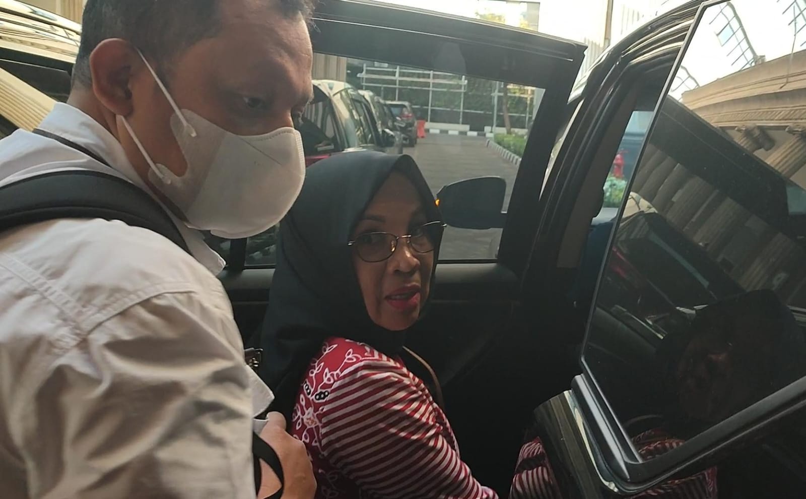 Diah yang mengenakan baju batik warna merah terlihat masuk di kursi belakang mobil petugas KPK setelah melakukan penggeledahan di Balai Kota Semarang.