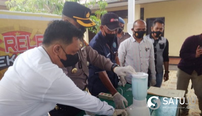 ROHIL, Satuju.com - Sidikitnya 46 Butir barang bukti (BB) Pil Ekstasi, 17 butir dimusnahkan Jajaran Polsek Bangko Polres Rokan Hilir dengan cara di belender dari tersangka Ahing Alias AH, Rabu 06 Oktober 2021.