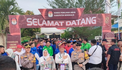 Bengkalis, Satuju.com - Pasangan bakal calon Bupati dan wakil Bupati Bengkalis Kasmarni -Bagus Santoso resmi mendaftar diri ke Komisi Pemilihan Umum (KPU) Bengkalis, Kamis (29/8/2024).