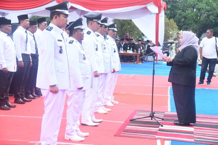 Bengkalis, Satuju.com - Perpanjangan masa jabatan Kepala Desa dan Anggota Badan Permusyawaratan Desa (BPD) Kecamatan Pinggir dan Kecamatan Talang Muandau dikukuhkan Bupati Bengkalis Kasmarni secara serentak, di halaman Kantor Camat Pinggir, Rabu 11 September 2024.