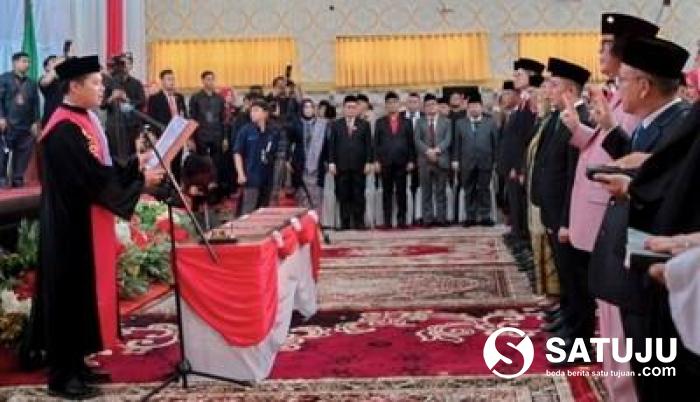 Bengkalis, Satuju.com - Tidak seperti biasanya, pelantikan calon anggota legislatif (caleg) produk Pemilu 2024 Kabupaten Bengkalis menjadi anggota DPRD. Sebanyak 45 Anggota DPRD Kabupaten Bengkalis periode 2024-2029, secara resmi dilantik dan diambil sumpahnya, di Gedung Cik Puan Bengkalis, Selasa, (17/9/2024).