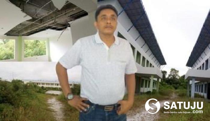 Direktur eksekutif Badan Anti Korupsi (BAK) LIPUN Bengkalis Abdul Rahman dan lokasi pembangunan SMA Unggulan dan Akademi Komunitas mangkrak. Pembangunannya puluhan miliyaran rupiah tiga tahap. (Poto/ist/satuju.com)