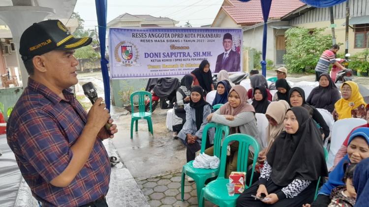Pekanbaru, Satuju.com - Reses di daerah pemilihannya (dapil) di Kecamatan Senapelan digelar Anggota Dewan Perwakilan Rakyat Daerah (DPRD) Kota Pekanbaru Doni Saputra MH, Senin (9/1/2024).