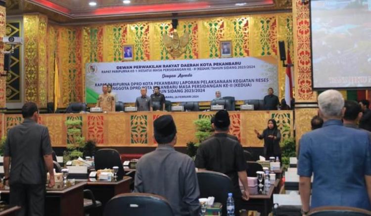 Pekanbaru, Satuju.com - DPRD Pekanbaru menggelar rapat paripurna Laporan Pelaksanaan Reses Anggota DPRD Pekanbaru tahun 2024, Senin (26/02/2024). Selain persoalan banjir, sampah dan pembangunan infrastruktur, masalah pendidikan serta kesehatan dan pengurusan administrasi kependudukan masih menjadi aspirasi yang paling banyak dikeluhkan warga.