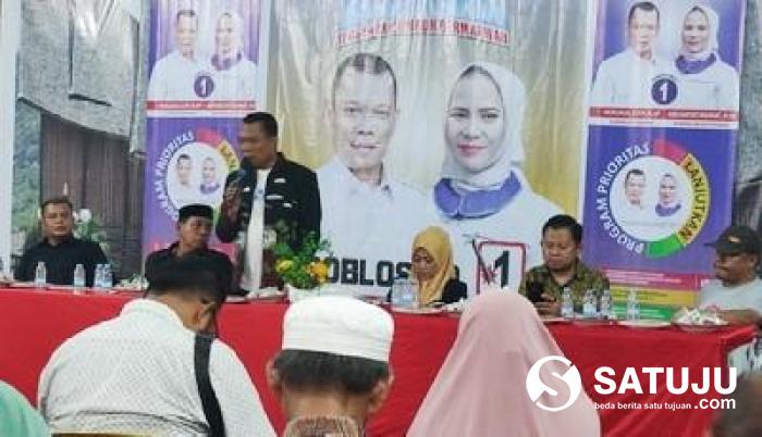 Muflihun, saat melakukan Kampanye Dialogis dengan masyarakat Kecamatan Bukitraya di Gedung Pertemuan Matua Saiyo, Jalan Tanjung, Kelurahan Tangkerang Labuai, Minggu malam (20/10/2024). (Poto/istimewa/satuju.com)