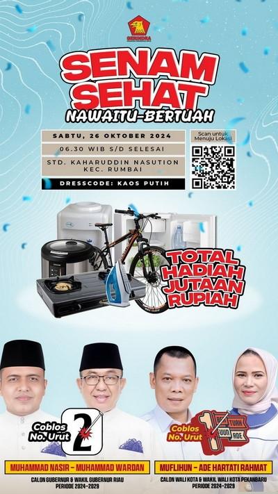 Muhammad Nasir - Muhammad Wardan akan menggelar kegiatan Senam Sehat Nawaitu-Bertuah danBersama Bacalon Walikota dan Wakil Walikota Pekanbaru nomor urut 1, Muflihun - Ade Hartati.