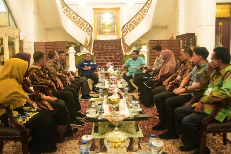 Turut hadir dalam audiensi, Staf Ahli Bupati Bidang Kemasyarakatan dan SDM Johansyah Syafri, Kepala Bappeda Rinto, Kadis PMD Ismail, Sekretaris Dinas Sosial Eji Marlina, Sekretaris Diskominfotik Adi Sutrisno, Sekretaris Dinas Perkimtan Jumiharto, Kabid Statistik dan Persandian Azmar, Kabag Kerjasama Dian Rachmadhany.**