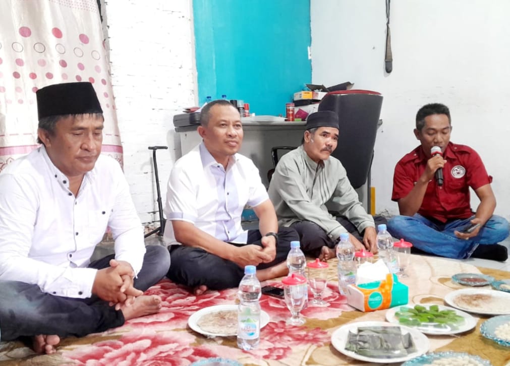 Calon Wakil Bupati Bengkalis Bagus Santoso dan istri, Ketua / Panglima Bungsu DPC LMR Bukit Erwin Syah Putra, S.Psi, serta puluhan tokoh masyarakat Desa Pakning Asal.(Poto/ist).