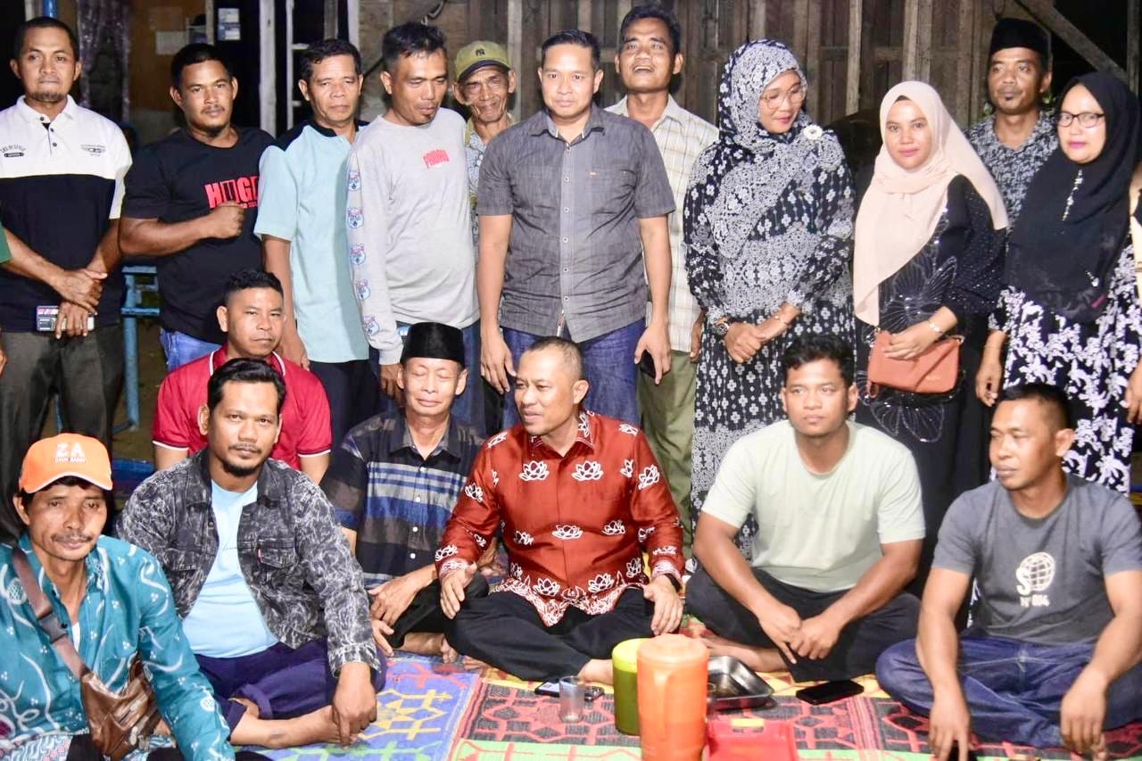 Dalam kegiatan blusukan Bagus Santoso disambut Pj Kades Petani Juprizal, Kelompok Tani, Tokoh dan warga masyarakat sambil menikmati ngopi di halaman rumah warga sambil menikmati ngopi malam hari.**