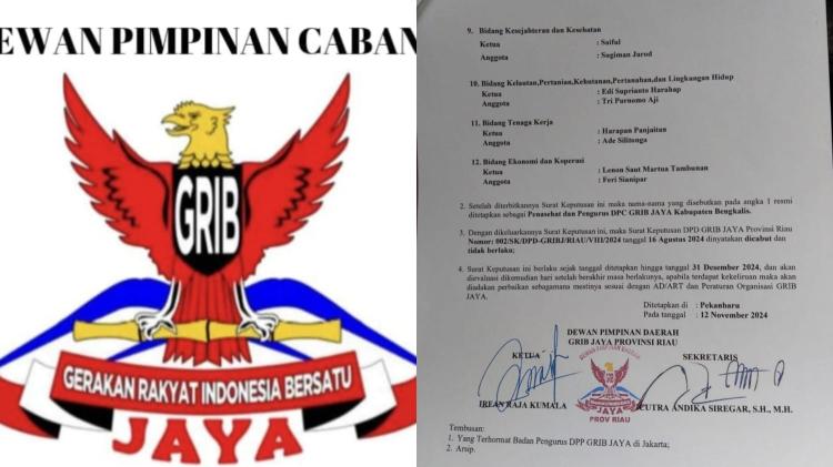 Ini Bukti SK Pengurus DPC GRIB Jaya Bengkalis dari DPD Provinsi Riau