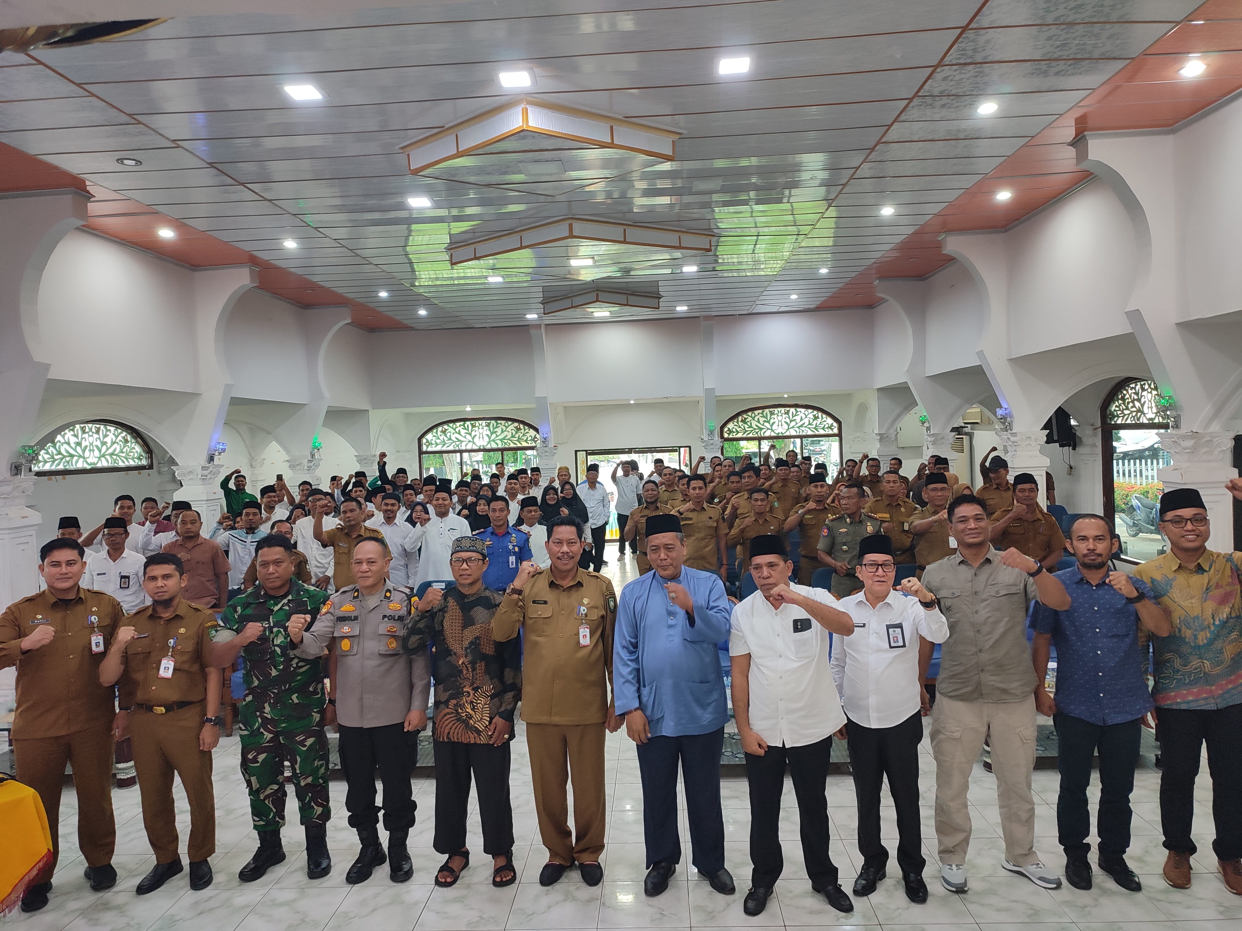 Penyuluh agama Islam mengikuti Silaturahmi dan Diskusi, dalam rangka mencegah dan menangkal penyebaran paham radikalisme dan terorisme mendukung Harkamtibmas yang kondusif menyongsong Pilkada 2024 di Gedung Laksamana Raja di Laut, Bengkalis, Selasa (19/11/24). (Poto/istimewa/satuju.com).