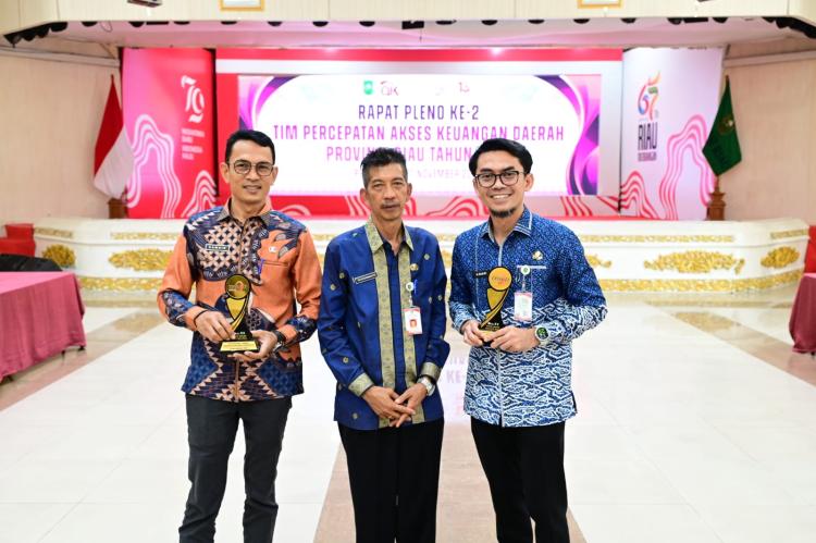 Penghargaan diserahkan langsung Pj Gubernur Riau Rahman Hadi dan Kepala OJK Provinsi Riau Triyoga Laksito kepada Pjs Bupati Bengkalis perwakilan Staf Ahli Bupati Bidang Kemasyarakatan dan SDM Johansyah Syafri, Kamis, 21 November 2024 di Balai Serindit Aula Gubernur.