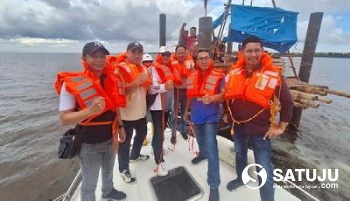 Tim Stafsus Menko IPK didampingi Kadis PUPR Ardiansyah bersama Sekretaris Erdila Fitriyadi meninjau pengerjaan Basic Desain pembangunan jembatan penghubung antara Pulau Bengkalis dan Daratan