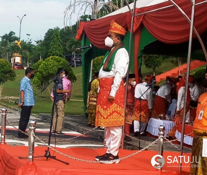 PELALAWAN, Satuju.com - Pemerintah Kabupaten Pelalawan, Selasa (12/10/2021) bertempat di halaman Kantor Bupati Pelalawan menggelar upacara peringatan Hari Jadi Kabupaten Pelalawan ke 22 (12 Oktober 1999-12 Oktober 2021).