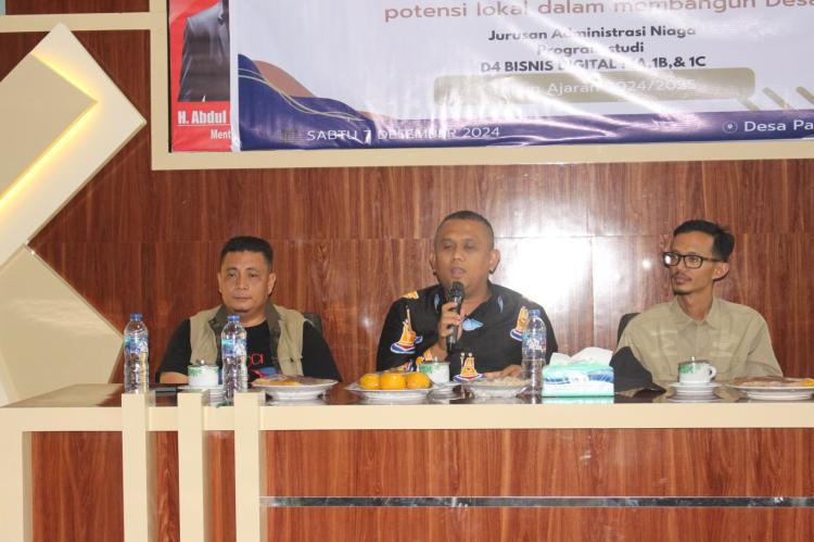 Lanjut Acil lagi, program-program dan potensi desa di Pangkalan jambi ini sekarang sudah mulai lirik oleh luar seperti kegiatan Ecowisata Mangrove yang di bantu kegiatannya oleh Pertamina, di kelompok itu sendiri sudah banyak produk-produk UMKM yang di hasilkan, ini lah kami mohon pelajar nantinya bisa mempromosikan produk tersebut , apatah lagi yang hadir ini dari Jurusan Bisnis Digital. Kemudian kita di Kecamatan juga sudah ada produksi Tenun Bukit Batu yang di kerjakan oleh ibu-ibu PKK atas Inisiasi ketua PKKK sekaligus istrinya Pak Camat.