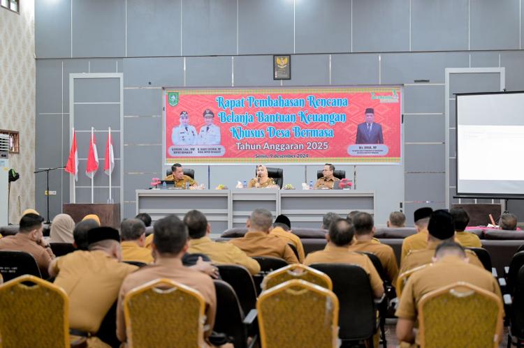 Bengkalis, Satuju.com - Rapat Pembahasan Dana Bermasa 1 Milyar untuk 1 Desa/Kelurahan dan Kecamatan se-Kabupaten Bengkalis di Gedung Bathin Betuah, Kantor Camat Mandau, Senin, 9 Desember 2024.Bupati Bengkalis Kasmarni, memimpin secara langsung Rapat Pembahasan Dana Bermasa 1 Milyar untuk 1 Desa/Kelurahan dan Kecamatan se-Kabupaten Bengkalis di Gedung Bathin Betuah, Kantor Camat Mandau, Senin, 9 Desember 2024.