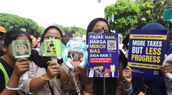 Selain itu, mereka terlihat membawa tulisan-tulisan yang berisi protes atas kenaikan PPN 12 persen. Salah satu ungkapan protes yang disampaikan adalah poster dengan tulisan 'Rezeki Dipatok PPN 12 persen' lengkap dengan gambar ayam jago.