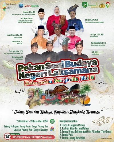 “Insya Allah jika tidak ada halangan, agenda ini akan dibuka oleh Bupati dan Wakil Bupati Bengkalis Ibu Kasmarni dan Bapak Bagus Santoso. Beberapa waktu lalu undangan resmi untuk membuka acara Pekan Seni Budaya Negeri Laksamana Jilid II, sudah kami sampaikan langsung kepada Beliau di Kota Duri, dan sudah dikoordinasikan dengan Bagian Prokopim Setdakab Bengkalis,” tambah Erwin.