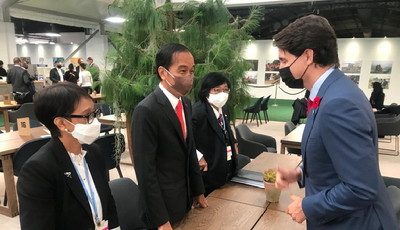 Pada akhir kunjungannya kemarin waktu Glasgow, Presiden Jokowi mengunjungi Paviliun Indonesia, yang menjadi strategi soft diplomacy menunjukkan pada dunia, komitmen, implementasi dan capaian Indonesia menuju FoLU Net-Sink 2030.