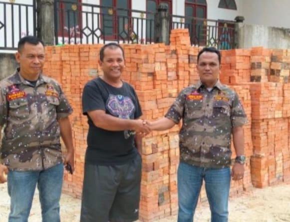 Ketua DPC GRIB Jaya Kabupaten Bengkalis Bung David Silitonga di wakili Sekretaris DPC Anton Darus, Wakil Ketua I Gumanto, dan Wakil bendahara Herman manik menyerahkan bantuan batu bata 20.000 pcs, Besi 100 batang, Pasir, kerikil dan semen 100 sak.