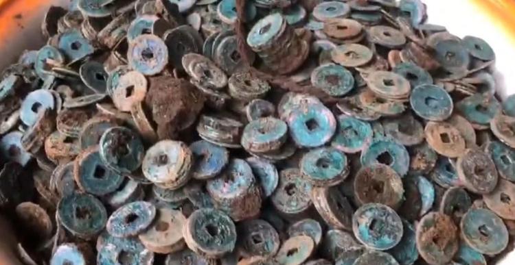 Koin-koin yang ditemukan itu berhuruf China dengan lubang segi empat di tengah. Koin itu diperkirakan terbuat dari tembaga.